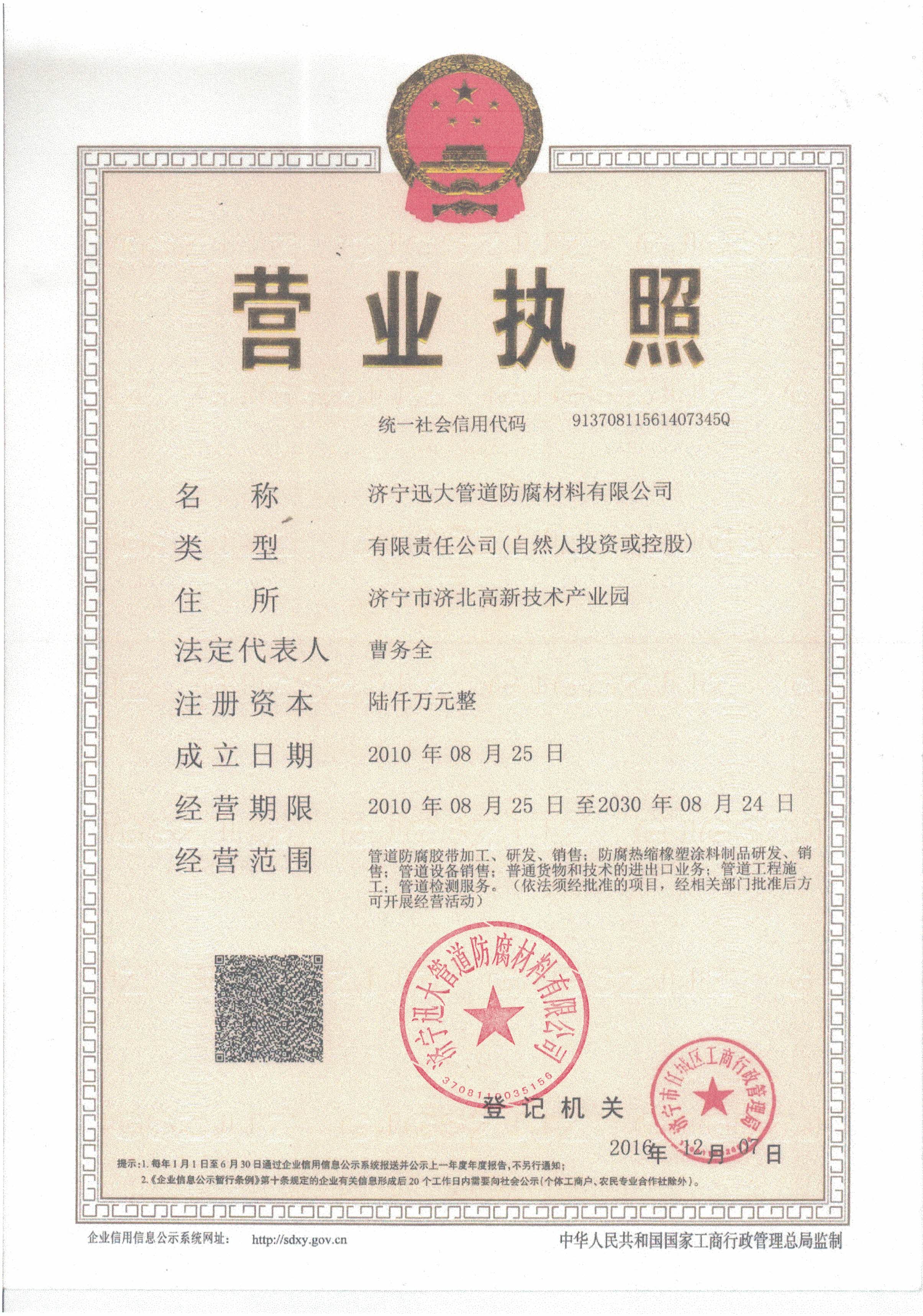 濟(jì)寧迅大管道防腐材料有限公司是國(guó)內(nèi)規(guī)模大、防腐產(chǎn)品齊全、設(shè)備先進(jìn)、質(zhì)量穩(wěn)定的集研發(fā)、生產(chǎn)、銷(xiāo)售的綜合性防腐、防水材料生產(chǎn)企業(yè)?! ?防腐主要產(chǎn)品有:聚乙烯管道防腐膠帶、聚乙烯膠粘帶、聚丙烯防腐膠帶、鋁箔防腐膠粘帶、丁基防水膠帶、管道膠帶、輻射交聯(lián)聚乙烯防腐熱收縮套、熱收縮帶、管道防腐防水熱縮帽、防腐帶等管道防腐產(chǎn)品。 本公司為股份制企業(yè),投資總額4200萬(wàn)元,注冊(cè)資本600萬(wàn)元。固定資產(chǎn)2190萬(wàn)元,流動(dòng)資產(chǎn)4271萬(wàn)元,凈值2890萬(wàn)元?! 」締T工198人,技術(shù)人員32人,銷(xiāo)售…